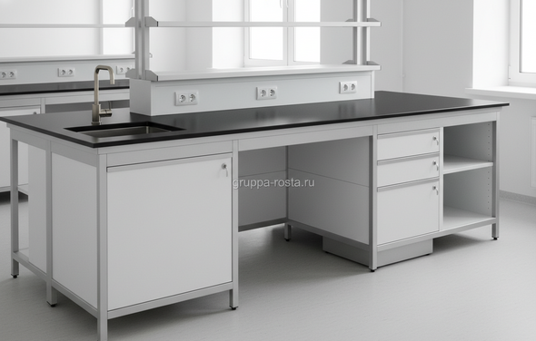 Базовая единица — модуль шириной 600/900/1200 мм на стальном каркасе с порошковым покрытием и регулировкой по высоте ±30–50 мм. Надстройка — сервисная стойка или полка‑канал для коммуникаций: вода, газ, вакуум, сжатый воздух, вытяжная линия, а также розетки с защитой от брызг. На 1,2–1,5 м длины закладывают 4–8 розеток, размещая их над плоскостью столешницы на 200–300 мм; критичное оборудование — на отдельных линиях с УЗО. Для весов и ПЦР‑станций ставят анти‑вибрационные вставки (гранит/керамика, демпферы).