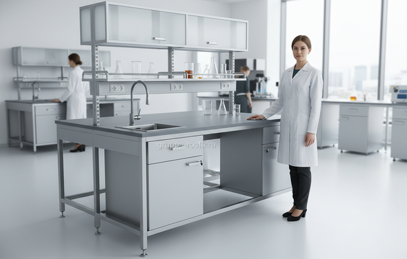 - Химбезопасность: материалы столешниц и раковин с подтверждённой стойкостью; держатели для пробирок/штативов, чтобы не тянулись через пламя.