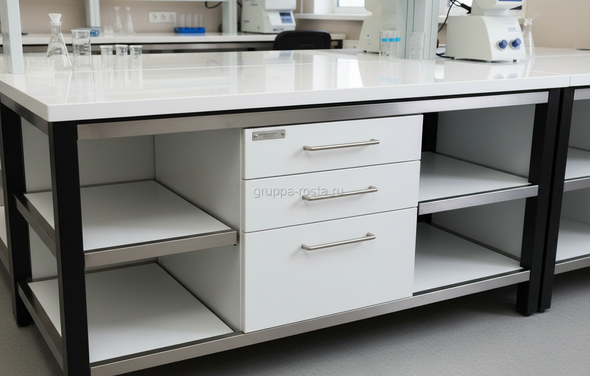 Смета упирается в столешницы — это нормально. Цена лабораторной мебели на 40–60% состоит из материалов верха и фурнитуры, остальное — каркасы и монтаж.