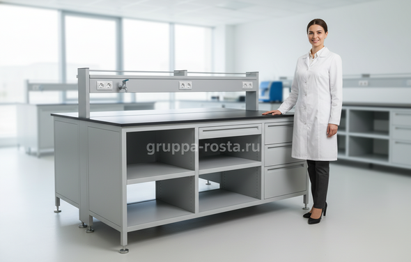 - Хранение: подстолья на колесах/цоколе, сейфы для ЛВЖ, шкафы для кислот/щелочей с вентиляцией.