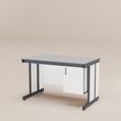 2. Каркас выполнен из профильной стальной трубы 50×25×1,5 и 25х25х1,5 мм на С-образных ножках с регулируемыми по высоте металлическими опорами для компенсации неровности пола. Диапазон регулировки опор по высоте от 0 до 35 мм. Каркас стола имеет специальные резьбовые отверстия для возможности установки навесных тумб в различных вариантах.