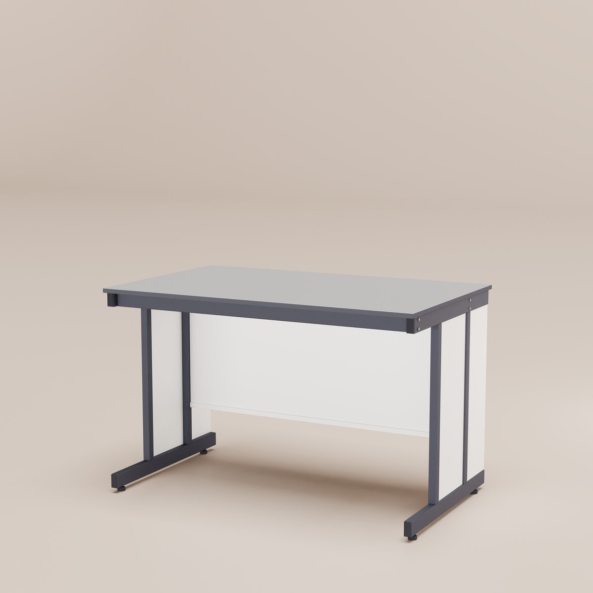 2. Каркас выполнен из профильной стальной трубы 50×25×1,5 и 25х25х1,5 мм на С-образных ножках с регулируемыми по высоте металлическими опорами для компенсации неровности пола. Диапазон регулировки опор по высоте от 0 до 35 мм. Каркас стола имеет специальные резьбовые отверстия для возможности установки навесных тумб в различных вариантах.