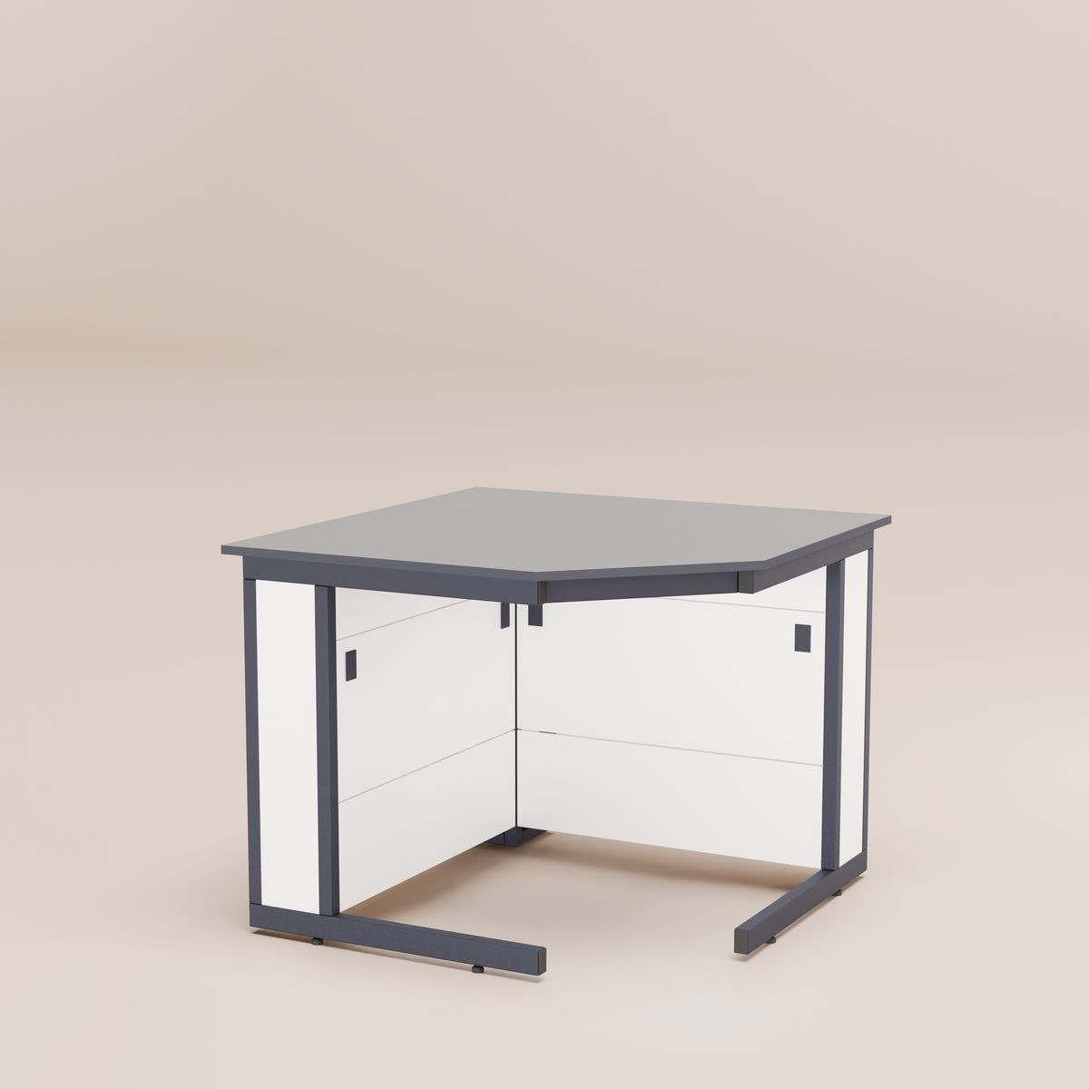 2. Каркас выполнен из профильной стальной трубы 50×25×1,5 и 25х25х1,5 мм на С-образных ножках с регулируемыми по высоте металлическими опорами для компенсации неровности пола. Диапазон регулировки опор по высоте от 0 до 35 мм. Каркас стола имеет цельносварную конструкцию.